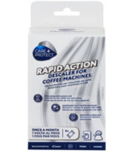 CARE + PROTECT 3 in 1 Decalcificante per Macchine da Caffè e Bollitori, Anticalcare, Universale, Rimuove Calcare e Residui di Caffè e tè, 6 Bustine per 6 Mesi di