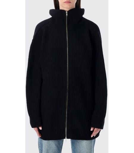 Mm6 Maison Margiela Cardigan in misto lana a coste Nero Taglia S