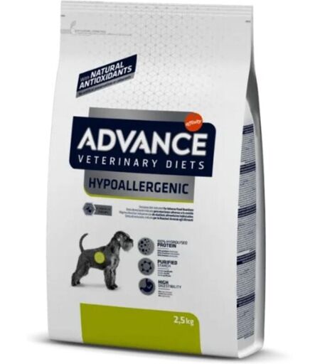 Advance Veterinary Diets Hypoallergenic è un alimento dietetico completo per cuccioli e cani adulti, indicato per ridurre le intolleranze a ingredienti e nutrienti, con un'unica fonte selezionata di proteine e un'unica fonte selezionata di carboidrati. Advance Veterinary Diets Hypoallergenic è un alimento dietetico completo per cuccioli e cani adulti, indicato per ridurre le intolleranze a ingredienti e nutrienti, con un'unica fonte selezionata di proteine e un'unica fonte selezionata di carboidrati. Caratteristiche principali: elaborato con le proteine idrolizzate della soia a bassissimo peso molecolare come unica fonte di proteine e amido purificato come unica fonte di carboidrati facilita la digestione di cani con allergie e intolleranze alimentari il rivestimento ipoallergenico conferisce un sapore eccellente è una dieta di esclusione indicata in caso di reazioni avverse agli alimenti Veterinary diets - hypoallergenic è un alimento clinicamente testato dai risultati comprovati ...
