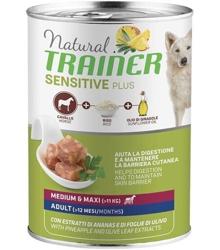 Natural Trainer Cane Sensitive Plus No Gluten Medium & Maxi Adult con Cavallo e Riso 400g
