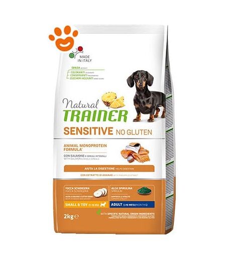 TRAINER Natural Dog Sensitive No Gluten Adult Small & Toy Salmone Natural Dog Sensitive No Gluten Adult Small & Toy Salmone - Sacco Da 2 Kg -