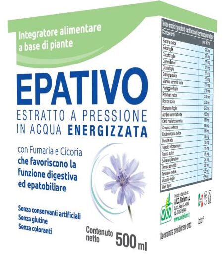 EPATIVO - Descrizione Integratore alimentare a base di piante (fumaria e cicoria), utile per favorire la funzione digestiva ed epatobiliare. Senza conservanti artificiali. Senza coloranti. Ingredienti Acqua, bardana (Arctium lappa L.) radice, boldo (Peumus boldus Molina) foglie, carciofo (Cynara sc… ...