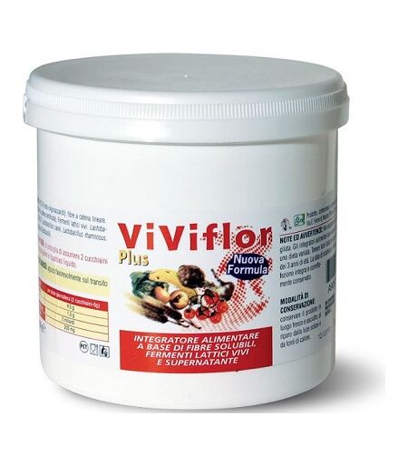 VIVIFLOR - Plus - Descrizione Integratore alimentare a base di fibre solubili, fermenti lattici vivi e supernatante, utile per favorire l'equilibrio della flora intestinale. - Ingredienti FOS (Frutto - oligosaccaridi): fibre a catena lineare. Inulina da agave (fibre a catena ramificata). Fermenti l… ...