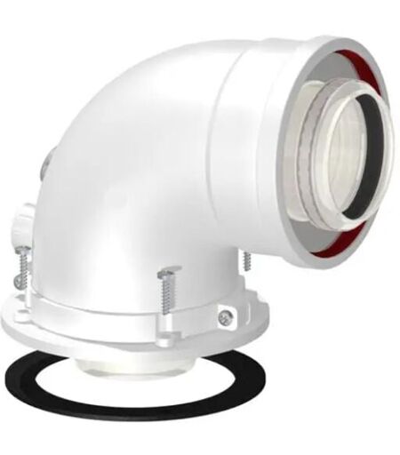 Curva di partenza coassiale a 90° per caldaie a condensazione.provvista diispezione per il prelievo delle analisi fumi e dell'aria comburente.in materiale pp.adattabile per caldaie ferroli-baltur-biasi-radiant-joannes-ici-savio-unical-euroterm-arca-lamborghini-sime-fondital-stargas-mcn. ...