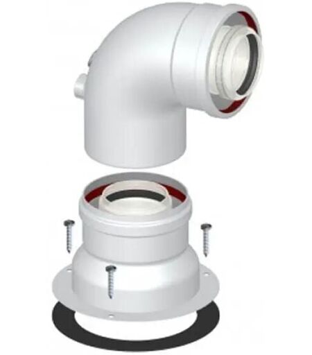Curva di partenza coassiale a 90° per caldaie a condensazione.provvista diispezione per il prelievo delle analisi fumi e dell'aria comburente.in materiale pp.adattabile per caldaie bosch-junkers. ...