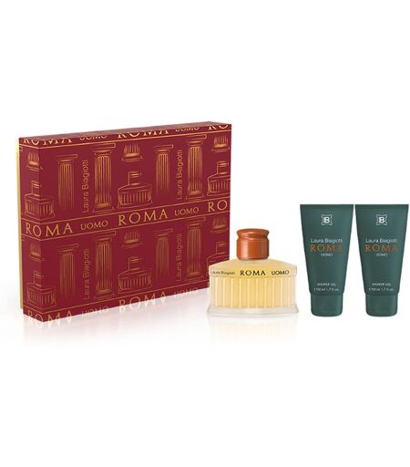 Gift Set contenente ROMA UOMO EAU DE TOILETTE da 75ml con 2 Shower Gel da 50ml ciascuno. Roma Uomo riproduce il classico senza tempo dell'uomo che esprime la sua forza nell'eleganza dei gesti, del pensiero, del portamento.È la classicità della natura che produce l'incontro di pompelmo rosa e mandarino, note dalla freschezza innata che donano solarità anche alle note speziate del basilico e dell'alloro mentre si fanno contaminare dalla forza straordinaria dei legni tropicali del cedro, del sandalo e della massoia.Un combinato olfattivo che dà vita al mistero della seduzione maschile che non ha bisogno di pretesti e artifici. ...