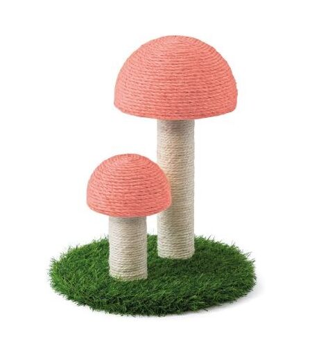 Fungo Rosa: Tiragraffi a forma di fungo, testa rosa. Materiali: Sisal ed erba sintetica per resistenza. Varied Sizes: Due funghi di misure diverse. Montaggio Facile: Senza attrezzi. Benefici: Soddisfa istinto di graffiatura, resistente. Spazioso: 30cm x 30cm x 38cm. ...