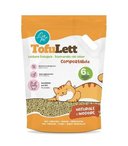 Leopet Tofulett Lettiera al Tofu per Gatti Agglomerante in Pellet Naturale e Inodore 6Lt