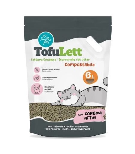 Leopet Tofulett Lettiera al Tofu per Gatti Agglomerante in Pellet Carboni Attivi 6Lt