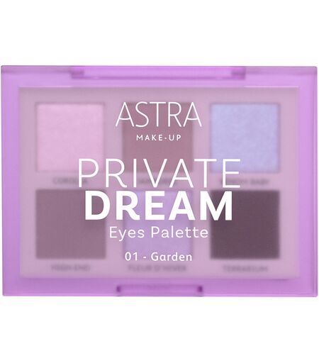 ASTRA PRIVATE DREAM Descrizione Palette occhi. 01-garden. Componenti Blush: mica, magnesium myristate, caprylic/capric triglyceride, octyldodecyl stearoyl stearate, silica, lauroyl lysine, 1,2-hexanediol, caprylyl glycol, tocopheryl acetate, aroma (flavor), linalool, linalyl acetate, hydroxycitronellal, terpineol. +/- (may contain): CI 77891 (titanium dioxide), CI 45410 (red 27 lake - red 28 lake - red 27), CI 15850 (red 6 lake - red 7 lake - red 6), CI 77491-CI 77492-CI 77499 (iron oxides), CI 77007 (ultramarines), CI 77742 (manganese violet), CI 77004 (kaolin). Terra: talc, mica, octyldodecyl stearoyl stearate, silica, sodium potassium aluminum silicate, isostearyl neopentanoate, magnesium myristate, dimethicone, 1,2-hexanediol, caprylyl glycol, triethoxycaprylylsilane, dimethiconol, Simmondsia chinensis (jojoba) seed oil, tocopheryl acetate, parfum (fragrance), hexamethylindanopyran, linalyl acetate, tetramethyl acetyloctahydronaphthalenes. +/- (may Contain): CI 77891 (titanium dioxide), CI 77491-CI 77492-CI 77499 (iron oxides). Conservazione Validità post-apertura: 18 mesi. Formato 7 g. Cod. 00013340001 ...