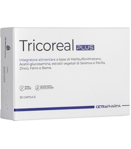 Tricoreal PLUS - Descrizione Tricoreal PLUS è un integratore alimentare a base di metilsulfonilmetano, N - acetil D - glucosamina, zinco, ferro, rame ed estratti vegetali di serenoa e perilla, indicato in caso di scarso apporto con la dieta o aumentato fabbisogno di tali nutrienti. Il rame contribu… ...