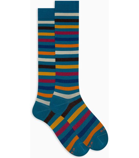 Gallo 1927 Calze lunghe donna cotone righe pari azzurro 36, 37, 38, 39, 40