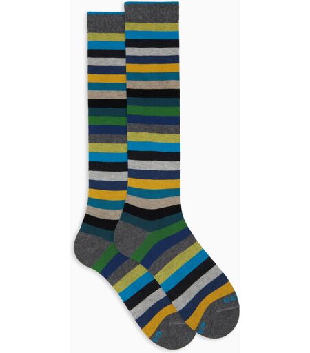 Gallo 1927 Calze lunghe uomo cotone grigio righe pari 40, 41, 42, 43, 44, 45