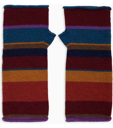 Gallo 1927 Guanti corti senza dita donna lana e cashmere bordò righe multicolor U/D