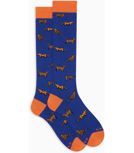 Gallo 1927 Calze lunghe uomo cotone blu fantasia gatti 40, 41, 42, 43, 44, 45