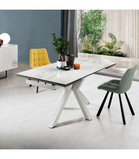 CAPODARTE - Tavolo cucina allungabile 240 cm piano gre's porcellanato Bianco jacky