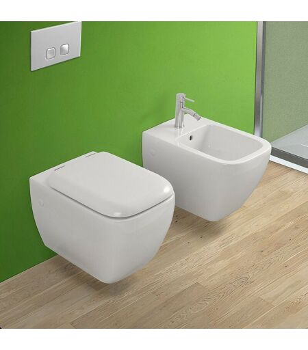 INBAGNO Set di Sanitari sospesi Metropolitan in ceramica con wc, Bidet e Copriwater avvolgente