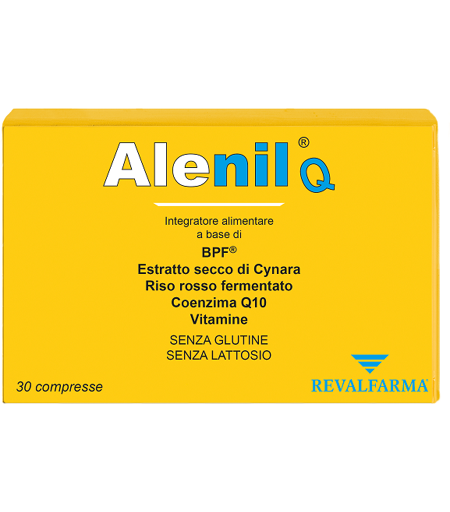 Alenil Q - Descrizione Integratore alimentare a base di BPF (bergamotto), estratto secco di Cynara (carciofo), riso rosso fermentato, coenzima Q10, acido folico, vitamine B6, B12 e vitamina E. Le foglie di Cynara favoriscono il metabolismo dei lipidi, mentre la vitamina E contribuisce alla protezio… ...