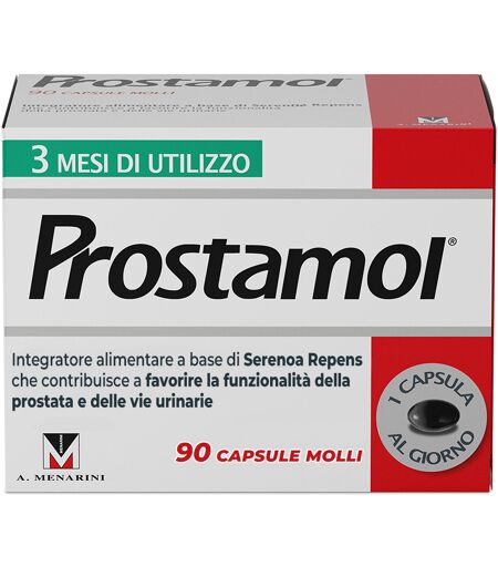 Prostamol - Descrizione Integratore alimentare a base di Serenoa repens, che contribuisce a favorire la funzionalità della prostata e delle vie urinarie. - Ingredienti Serenoa repens (W. Bartram) small (estratto oleoso da frutto); gelatina; umidificante: glicerolo 85%; acqua. Senza glutine. - Carat… ...
