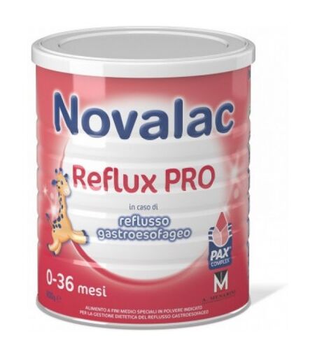 Novalac Reflux Latte In Polvere Ant-Reflusso 800gr. Alimento dietetico completo da un punto di vista nutrizionale in grado di soddisfare le esigenze nutrizionali dei bambini sin dalla nascita in caso di rigurgito severo e/o persistente. La formula di Novalac Reflux e' studiata specificamente per i casi di rigurgito neonatale importante. Contiene un doppio complesso addensante, che unisce alle qualita' dell'amido le proprieta' delle fibre alimentari naturali. Limita il rigurgito ed ha una composizione specifica in sostanze nutritive che aiuta a facilitare la buona digestione del bambino. Sotto controllo medico, Novalac Reflux puo' costituire l'unica fonte di alimentazione del bambino fino all'eta' di 6 mesi. Successivamente, e su consiglio del medico, Novalac Reflux si integrera' nell'alimentazione diversificata del bambino. Novalac Reflux deve essere usato unicamente per neonati che presentano rigurgito severo e/o persistente. Ingredienti: Maltodestrine; olii vegetali (palma, colza, palmisti, girasole); lattosio; idrolizzato di proteine del latte; farina di semi di carrube; glucosio; amido; fosfato di calcio; citrato di potassio; cloruro di magnesio; cloruro di potassio; fosfato dipotassico; cloruro di colina; acido ascorbico; taurina; inositolo; solfato di ferro; idrossido di potassio; solfato di zinco; l-carnitina; acetato di DL a-tocoferolo; palmitato di L-ascorbile; nicotinamide; D-pantotenato di calcio; solfato di rame; acido citrico; riboflavina; acetato di retinolo; cloridrato di tiamina; cloridrato di piridossina; acido folico; ioduro di potassio; solfato di manganese; fitomenadione; selenito di sodio; D-biotina; colecalciferolo; cianocobalamina. ...