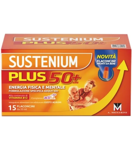 A.MENARINI IND.FARM.RIUN.Srl Sustenium Plus 50+ - Integratore alimentare energizzante per adulti over 50 - 15 flaconcini