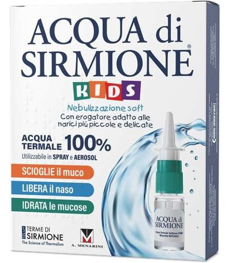 ACQUA DI SIRMIONE KIDS Descrizione Acqua termale sulfurea salsobromoiodica per l'igiene quotidiana delle secrezioni catarrali del naso e della gola. È riccca di sali minerali naturali e con caratteristico odore di zolfo. Batteriologicamente pura. Modalità d'uso CON EROGATORE SPRAY NEBULIZZANTE 1. Svitare il tappo del flaconcino. 2. Rimuovere la protezione inferiore in plastica dall'erogatore nebulizzante spray. 3. Forare il sigillo protettivo e avvitarlo sul flaconcino. 4. Effettuare dai 5 ai 10 spruzzi per narice più volte al giorno reclinando leggermente il capo all'indietro. 5. Attendere un minuto prima di soffiare delicatamente il naso. 6. Per ottenere il miglior beneficio consumare l'intero contenuto nel corso della stessa giornata. CON AEROSOL E DOCCIA MICRONIZZATA 1. Svitare il tappo del flaconcino. 2. Rimuovere la protezione inferiore in plastica dall'erogatore nebulizzante spray. 3. Perforare il sigillo protettivo. Un'eventuale perdita del prodotto in eccesso è normale. 4. Versare nell'ampolla dell'apparecchiatura per aerosol o doccia micronizzata il contenuto di un flaconcino per ogni applicazione. 5. Si consiglia di effettuare almeno due applicazioni al giorno. Avvertenze Non ingerire. Non indicata per terapia idropinica. Non utilizzare dopo la data di scadenza. Il prodotto è di solito ben tollerato. Formato 6 flaconcini da circa 15 cc. Cod. 51BFPE ...