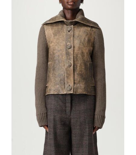 Antonio Marras Cardigan in pelle con maniche in lana Beige Taglia 42