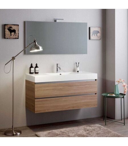 KIAMAMI VALENTINA - Mobile Bagno Sospeso 120Cm 2 Cassetti Rovere Naturale, Lavabo e Specchio 120X60 Vittoria