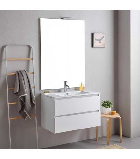 KIAMAMI VALENTINA - Mobile Bagno Sospeso 80Cm 2 Cassetti Bianco Con Specchiera 80X110 Bilbao