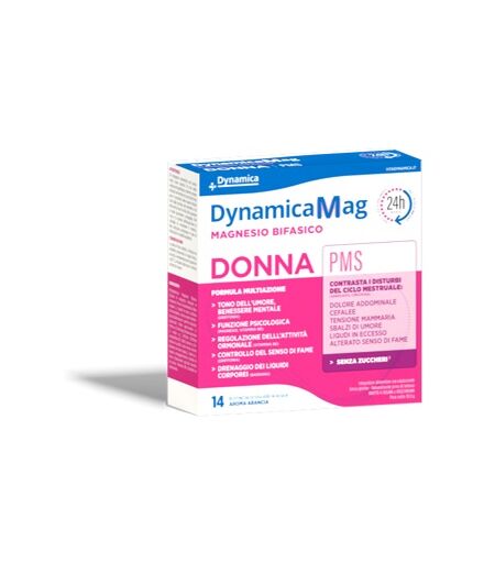 DynamicaMag - DONNA PMS - Descrizione Integratore alimentare in bustine monodose a base di magnesio vitamina B6 e 4 estratti vegetali selezionati e dosati in modo specifico tra loro per rispondere alle esigenze della donna durante la fase premestruale e per aiutare a contrastare i disturbi più com… ...