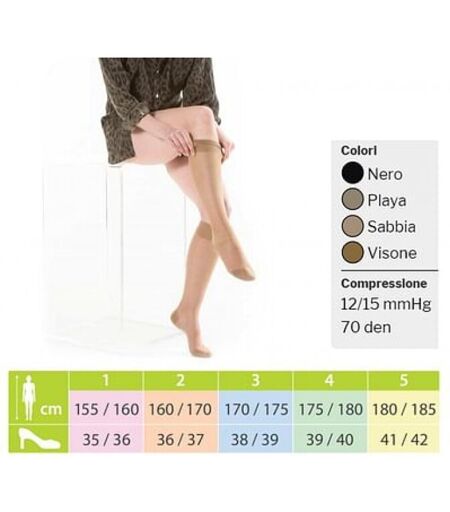 Kàmila Support Bas New 70 - Descrizione Gambaletto 70 den, 12/15 mmHg. Pratico con bordo morbido che non stringe e non scende, punta e tallone rinforzati. Modalità d'uso Indossare i guanti in gomma o monouso e, stando sedute, arrotolare il capo infilandolo dalla punta e portare verso l'alto prima u… ...