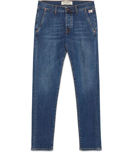 Jeans in denim light con lavaggio medio e impunture in contrasto. Vita media con passanti e salpa applicata sul retro. Due tasche all'americana sul fronte e due tasche sul retro con label Roy Roger's applicato. Chiusura con bottoni logati. Slim fit. COMPOSIZIONE: 98% COTONE 2% ELASTODIENE. ...