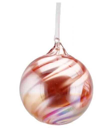 Palla di Natale in vetro iridescente effetto spirale colore rosa. La sua particolare fattura, crea un delicato movimento, anche grazie ai riflessi mobili e cangianti del materiale. Diametro 12cm ...