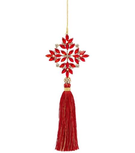 EDG Pendaglio nappa colore rosso con fiocco di neve decorazione per albero di Natale da 22 cm