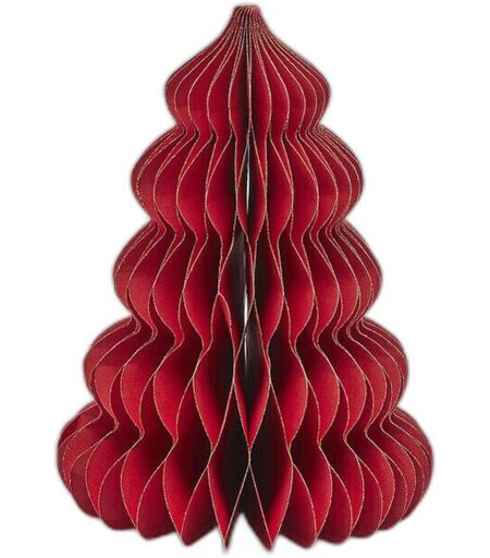 MAGIEDINATALE - Decorazione natalizia origami a forma di Pino, colore Rosso -ø 19 x 25h cm
