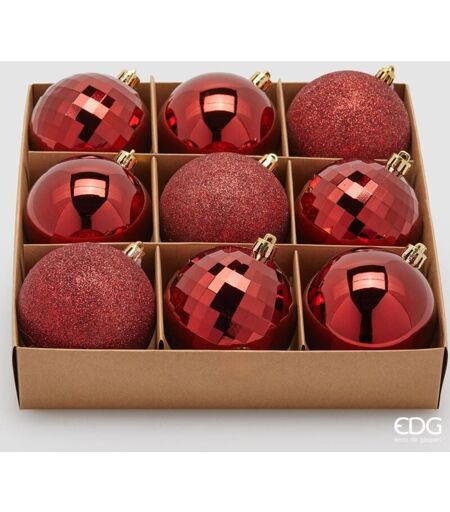 EDG Set 9 Pezzi Palla Di Natale Mirrormix Assortiti Rosso Scuro 8 Cm