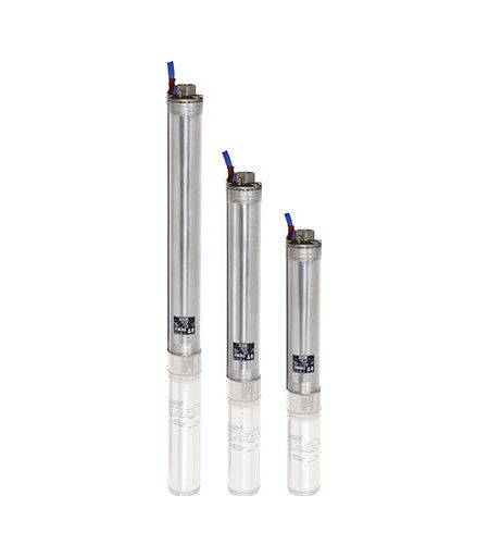 4". Per acque chiare. Giranti in tecnopolimero alloggiate nella scatola stadio con anelli di rasamento in acciaio inossidabile. Camicia pompa, albero... 4". Per acque chiare. Giranti in tecnopolimero alloggiate nella scatola stadio con anelli di rasamento in acciaio inossidabile. Camicia pompa, albero, giunto di accoppiamento con il motore, filtro di aspirazione integrato e copri cavo in acciaio inossidabile. Supporti di aspirazione e mandata in acciaio inossidabile AISI 304 microfuso. Valvola di ritegno incorporata in tecnopolimero removibile. ...