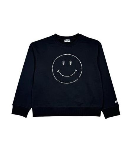 Felpa Moschino a maniche lunghe, girocollo, polsini e fondo elasticizzate a costine. Presenta sul fronte un grande smile realizzato interamente con borchie, mini logo stampato sulla manica sinistra ...