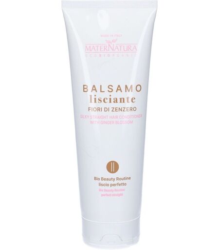 MaterNatura Balsamo Setificante Capelli Lisci ai Fiori di Zenzero Leviga i capelli, lasciandoli setosi e facili da spazzolare; Migliora la pettinabilità e la maneggevolezza dei capelli riducendo l'effetto dei capelli "svolazzanti". Modo d'uso: Applicare per alcuni minuti dopo lo shampoo sui capelli bagnati. Poi sciacquare abbondantemente e proseguire con lo styling che più preferisce. Ingredienti: Aqua [Water] (Eau), Cetyl alcohol, Stearyl alcohol, Dipalmitoylethyl hydroxyethylmonium methosulfate, Lauryl lactate, Prunus amygdalus dulcis (Sweet almond) seed extract (*), Punica granatum peel extract, Urtica dioica (Nettle) leaf extract (*), Zingiber officinale (Ginger) root oil, Linum usitatissimum (Linseed) seed extract (*), Soy amino acids, Wheat amino acids, Arginine HCl, Serine, Threonine, Behenamidopropyl dimethylamine, Benzyl alcohol, Parfum [Fragrance], Lactic acid, Sodium benzoate, Potassium sorbate, Glycerin, Limonene. *da Agricoltura Biologica ...