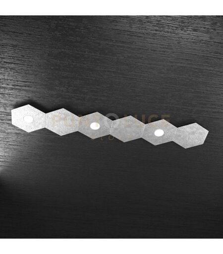 TopLight Hexagon Applique-Plafoniera 3 Luci + 3 Decorativo Foglia Argento 1142-3l3d-Fa