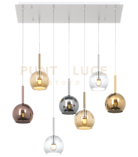 Sosp. Bianco Rettangolare 7 Luci Vetri Tutti Piccolo (2xtrasparente 2xambra 1xcromo 1xoro 1xrame) ...