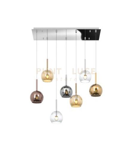 Sosp. Cromo Rettangolare 7 Luci Vetri Tutti Piccolo (2xtrasparente 2xambra 1xcromo 1xoro 1xrame) ...