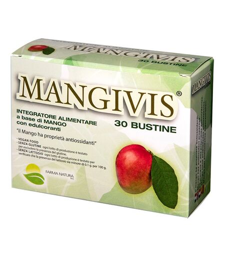 MANGIVIS - Descrizione Integratore alimentare a base di mango, con edulcoranti. Il mango ha proprietà antiossidanti. Vegan Food. Ingredienti Edulcorante: sorbitolo; Mangifera indica L. (mango) buccia estratto secco al 20% in polifenoli, aroma e succo di mirtillo; edulcorante: sucralosio; agente ant… ...