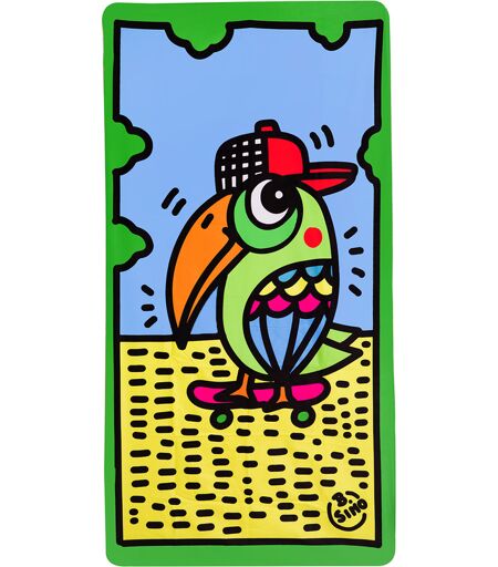 Aggiungi un po' di colore alle tue giornate di vacanza con questo allegro telo mare! La grafica è stata realizzata in esclusiva per Kasanova dal tattoo e street artist Simone Bonetta, in arte B.Simo e raffigura un inedito pappagallo sullo skateboard! Quanto colore porterà sulla spiaggia: perfetto per prendere il sole a riva o per asciugarti dopo un bel tuffo al mare o in piscina. Un must have per l'estate. Grammatura: 150 gsm. Lavabile a 30° in lavatrice. Misure: 87x165 cm. ...
