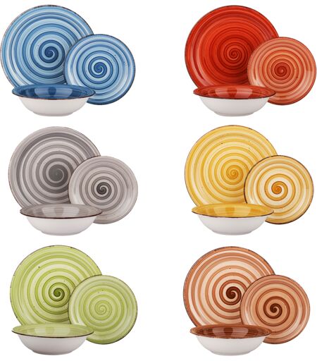 Il set piatti Marigold in ceramica super white dona luce alla tua tavola e fa risaltare le pennellate realizzate a mano in 6 brillanti sfumature. Potrai personalizzare ogni posto creando sempre nuovi accostamenti di colore e valorizzando al meglio ogni tua ricetta, dai primi al dessert. Il servizio per 6 persone è adatto anche all'uso nel forno a microonde per scaldare le pietanze e lavabile in lavastoviglie. Il set include 6 piatti piani tondi con diametro 27 cm, 6 piatti fondi tondi con diametro 21 cm e 6 piattini da frutta o dolce tondi con diametro 19 cm. ...