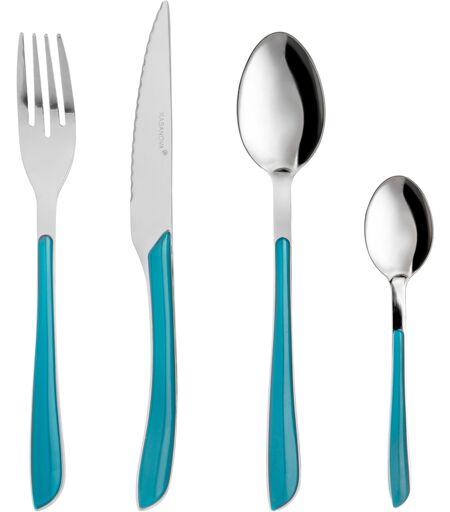 Porta eleganza e modernità in tavola con il set 24 posate Afrodite. Caratterizzato da un raffinato manico blu e un’anima in acciaio inox 430, unisce design e resistenza per un’esperienza unica. Il set include forchetta, coltello, cucchiaio e cucchiaino per 6 persone, perfetto per ogni occasione, dal pranzo quotidiano alle cene speciali. Ergonomiche e bilanciate, offrono una presa comoda e stabile. Facili da pulire e durevoli nel tempo, aggiungono un tocco sofisticato alla tua tavola. ...