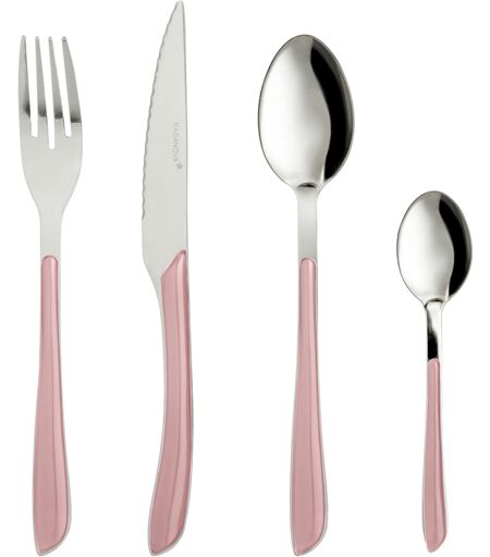 Porta eleganza e modernità in tavola con il set 24 posate Afrodite. Caratterizzato da un raffinato manico rosa scuro/malva e un’anima in acciaio inox 430, unisce design e resistenza per un’esperienza unica. Il set include forchetta, coltello, cucchiaio e cucchiaino per 6 persone, perfetto per ogni occasione, dal pranzo quotidiano alle cene speciali. Ergonomiche e bilanciate, offrono una presa comoda e stabile. Facili da pulire e durevoli nel tempo, aggiungono un tocco sofisticato alla tua tavola. ...