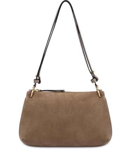 Compatta, sofisticata, perfetta per ogni momento. Realizzata in crosta con riporti in vitello liscio, questa shoulder bag è dotata di tracolla regolabile a scorrimento con gemelli e chiusura con zip. L'interno foderato include una tasca con zip e label logata in pelle. I dettagli in galvanica gold aggiungono un tocco prezioso a un design essenziale ma ricercato. ...