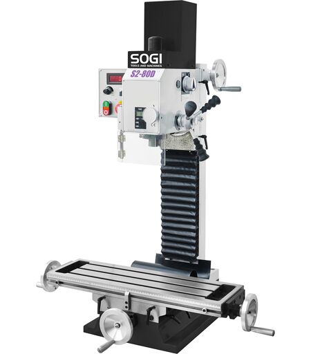 La fresatrice professionale SOGI S2-80D è una macchina utensile funzionale e compatta in grado di eseguire forature alesature filettature (per mezzo di appositi maschiatori a frizione) e