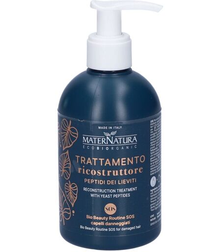MaterNatura Trattamento Ricostruttore ai Peptidi dei Lieviti Trattamento iniziale altamente concentrato per ricostruire i legami originali dei ponti di solfuro ormai alterati nei capelli danneggiati. Stabilizza la cheratina dei capelli, riempie e rimpolpa la fibra capillare. I capelli recuperano forza ed elasticità e la loro architettura viene ripristinata. Il 65 % dei capelli è riparato e ricostruito. E' il primo step di un rituale Sos! Modo d'uso: Il trattamento è da effettuare PRE Shampoo, meglio a capello umido, applicando dalle radici alle punte per 30 min di posa che permettono al trattamento di penetrare nella fibra capillare e avere il tempo di riparare il danno. Ingredienti: Aqua [Water] (Eau), Cetearyl alcohol, Behenamidopropyl dimethylamine, Lactic acid, Saccharomyces lysate, Hydrolyzed wheat protein, Soy amino acids, Wheat amino acids, Hydrolyzed corn protein, Hydrolyzed soy protein, Simmondsia chinensis (Jojoba) seed oil (*), Astrocaryum murumuru seed butter [Astrocaryum murumuru butter], Arginine HCl, Serine, Threonine, Oryza sativa seed protein, Aloe barbadensis leaf extract (*), Panthenol, Punica granatum peel extract, Oryza sativa (Rice) extract, Phytic acid, Sodium hyaluronate, Benzyl alcohol, Sodium benzoate, Glycerin, Sodium dehydroacetate, Parfum [Fragrance], Linalool *from Organic Agriculture *da Agricoltura Biologica ...